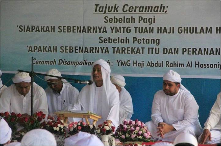 Bersempena dengan majlis yang mulia ini, pewaris Yang Mulia Tuan Guru Haji Ghulam Hassan Ali-Akbar Al Haj Al-Ghaus Al-Bikangi RA (YMTG RA) iaitu Yang Mulia Tuan Guru Haji Abdul Rahim Al-Hassaniyyah telah menyampaikan dua sesi ceramah/ucapan di mana beliau telah menerangkan tentang: