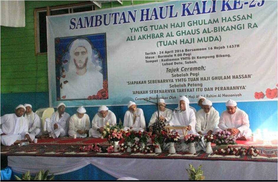 Majlis gilang gemilang ini telah di usahakan oleh ahli keluarga YMTGURU RA sendiri dan diketuaioleh anak-anaknya iaitu Haji Abdul Hakim Bin YMTG Haji Ghulam Hassan AlBikangi RA dan Haji Abdul Halim As-Sidek Bin YMTG Haji Ghulam Hassan AlBikangi RA. Sekalian orang ramai telah dijemput ke majlis ini. Banner/sepanduk jemputan telah dipasang sekitar daerah Semporna, Lahad Datu dan beberapa kawasan daerah di negeri Sabah. Melalui media sosial juga kita telah menwar-warkan jemputan ini. Alhamdulillah syukur ke hadrat Ilahi, majlis telah dihadiri lebih kurang 3000 orang yang datang dari sekitar daerah Sabah, Sarawak dan Semenanjung Malaysia.